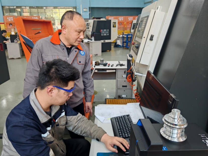 他自创的“三板斧”教学法很快颠覆传统:化繁为简,他将代码编织成故事:以“切蛋糕”为喻,将原本枯燥的G代码巧妙转化为引人入胜的闯关游戏;变废为宝,他将废品化作鲜活教材:实训室墙壁上,一面“败者墙”赫然在目,每个报废零件都贴上了价签——“这块铝合金,价值一顿热腾腾的火锅;那块钛合金,足抵半个月的生活开销”。赋机以灵,他引领学生以数控车床为笔,精雕细琢《兰亭集序》,让铁屑与墨香交织共舞,奏响了一曲工业与艺术的交响曲。