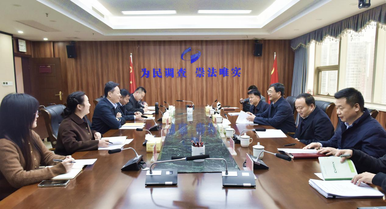 1月17日下午,在线博彩 党组书记、厅长李永军与国家统计局湖南调查总队党组书记、总队长朱国勇交流对接工作。双方就深化合作交流,共同做好人社领域统计调查工作进行座谈交流。