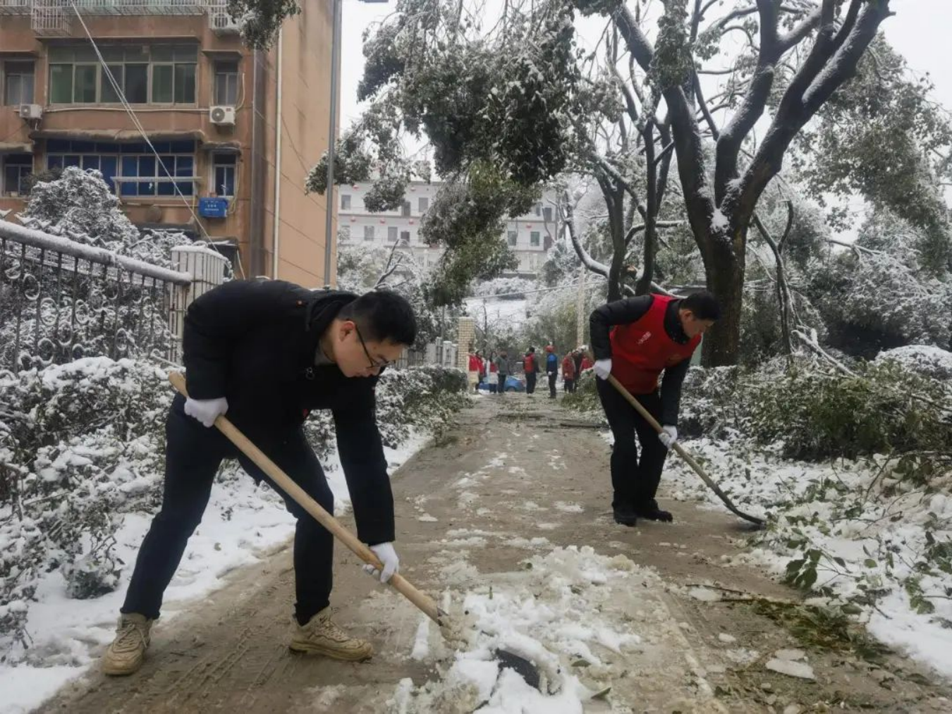 连日的低温雨雪冰冻天气给人民群众生活和出行带来了诸多不便,全省各级人社党员干部闻“雪”而动,积极响应当地党委政府号召,扫雪除冰、清理断枝,同时为群众送上暖心的服务。