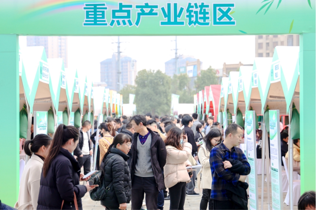 在招聘会现场,比亚迪、蓝思科技、顺丰速运、旺旺食品、湖南航天磁电等180家企业挂出各式招聘标语,向求职人员介绍“家门口”的岗位和待遇,覆盖智能制造、绿色食品、电子信息、生物医药、新材料、节能环保等重点产业。