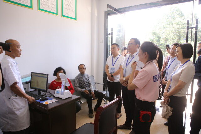 (9月15日,湖南省医疗保障重点民生实事项目总结会暨张家界市“医保快递”经验推介会在张家界召开,与会人员先后来到张家界市武陵源区索溪峪街道政务服务大厅、田富村、金杜村现场观摩了“医保快递”工作。)