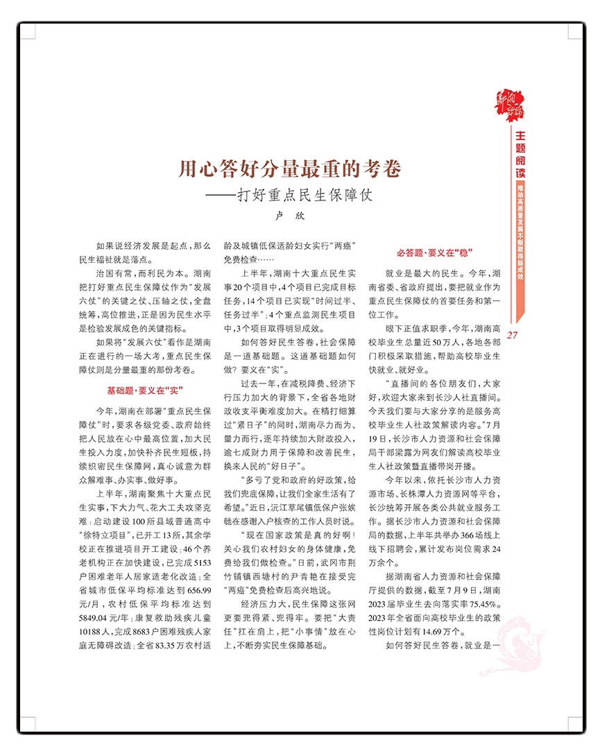 如果将“发展六仗”看作是湖南正在进行的一场大考,重点民生保障仗则是分量最重的那份考卷。