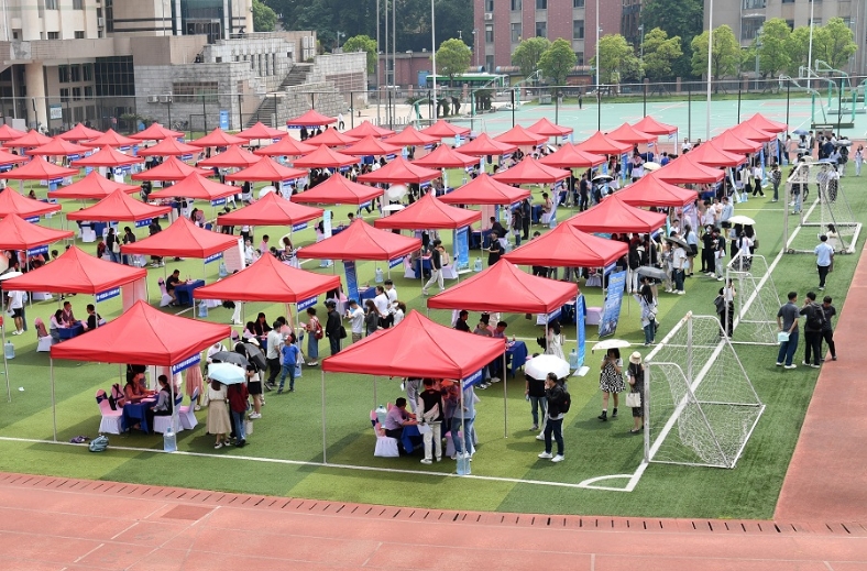5月13日,湖南大学体育场,湖南长沙结对联系高校服务就业专项活动启动。(图片来源:湖南省人民政府网站)